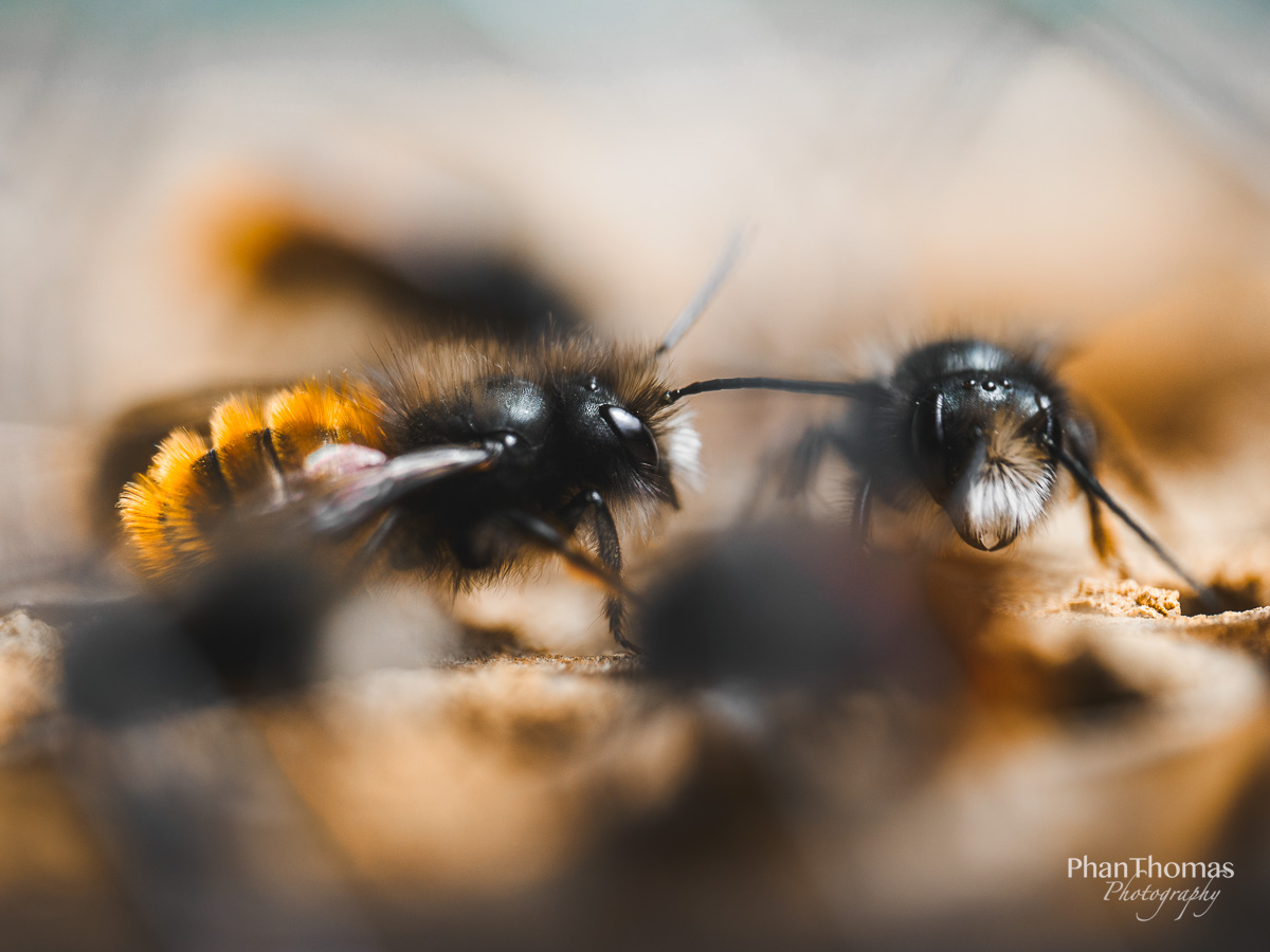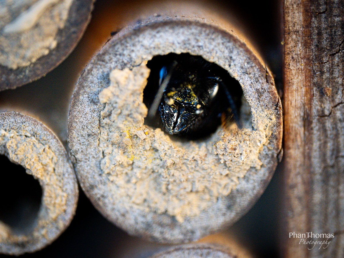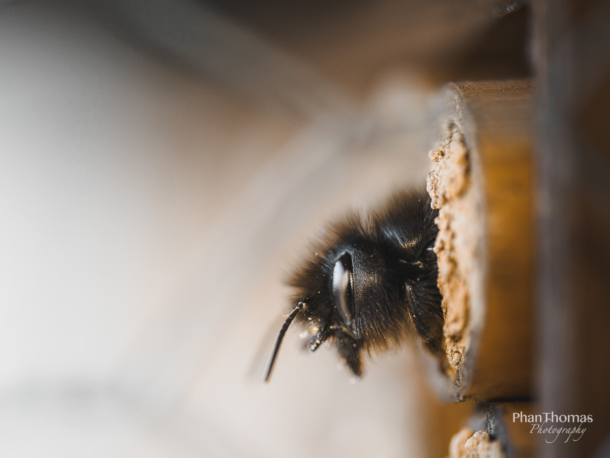 Hallo Welt. Die Bienen schlüpfen aus »zugemauerten« Bambusröhrchen.Dieses Exemplar schaut noch etwas schüchtern um die Ecke.Ich liebe die Farben des Mauerbienenkleids. Im richtigen Licht sehen sie aus, als wären sie aus Gold.Hier muss erst mal ausgemistet werden, damit später Platz ist für die nächsten Mieter.Die ersten Bienen sind wach und wecken die verbliebenen Langschläfer.Und Noch ein paar schüchterne Blicke. Ob sie sich wohl beobachtet fühlt?Jetzt wo männliche und weibliche Bienen wach sind, wird auch direkt mal losgelegt mit der Stammbaumpflege.Das klappt mal gut …… und mal weniger gut. 😅Gar nicht so leicht, die kleinen Racker mit der Kamera scharf abzubilden. Aber wenn es klappt, entstehen schön verträumt weiche Makrofotos.Die nun freien Bienenbehausungen sind derweil sehr begehrt.Und wer keine Bleibe findet, wird eben erfinderisch.Nach erfolgreicher Paarung und Eiablage wird auch schon wieder der Mörtel aufgetragen.Erfahrungsgemäß sind unsere Bienchen beim Zumauern sehr gründlich.Da muss man auch mal von innen ran.